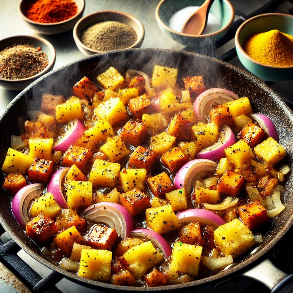 Experience the tropics in every bite with Hawaiian Jack BBQ Bliss! This plant-based masterpiece combines tender, shredded jackfruit, sweet fresh-cut pineapple, and savory onion, all tossed in a rich and smoky vegan BBQ sauce. The flavors meld together to create a dish so satisfying, you’ll swear it tastes just like Hawaiian pulled pork BBQ. Perfectly suited for wraps, buns, or even as a standalone dish, this recipe is a deliciously wholesome way to enjoy a classic favorite—no compromise needed. This recipe makes 4 servings.